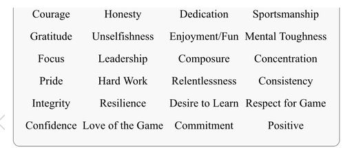 Look at the list of characteristics below that champion athletes tend to practice. Mark down the 3 you'd most like to exemplify or represent this season. Let your desire to live these out on and off the field fuel every aspect of your life, even beyond playing baseball.